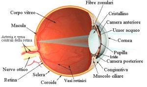 L’occhio è una struttura complessa costituita da una componente connettivale che in pratica costituisce il guscio, poi da una componente nervosa e da una componente ottica, questo insieme cosi costituito permette che le immagini formate da queste strutture ottiche ( prevalentemente cornea e cristallino) vadano a finire sulla retina che è invece di natura nervosa; la quale ha la capacità di rielaborare le immagini e trasmetterle poi a livello corticale.